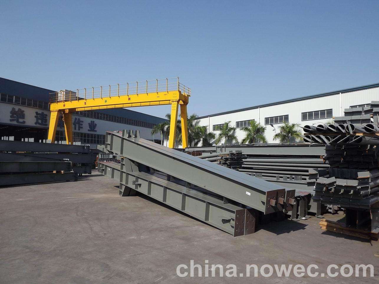 条状单元一般沿长跨方向分割,其宽度约为1~3个网格,其长度为l2或l2/2(l2为短跨跨距)。块状单元一般沿临江网架平面纵横向分割成矩形或正方形单元。每个单元的重量以现有起重机能胜任为准。条(块)与条(块)之间可以直接拼装,也可空一网格在高空拼装。由于条(块)状单元是在地面拼装,因而高空作业量较高空散装法大为减少,拼装支架也减少很多,又能充分利用现有起重设备,故较经济。这种安装方法适用于分割后网架的钢度和受力状况改变较小的各类中小型网架,如两向正交正放四角锥、正放抽空四角锥等网架。